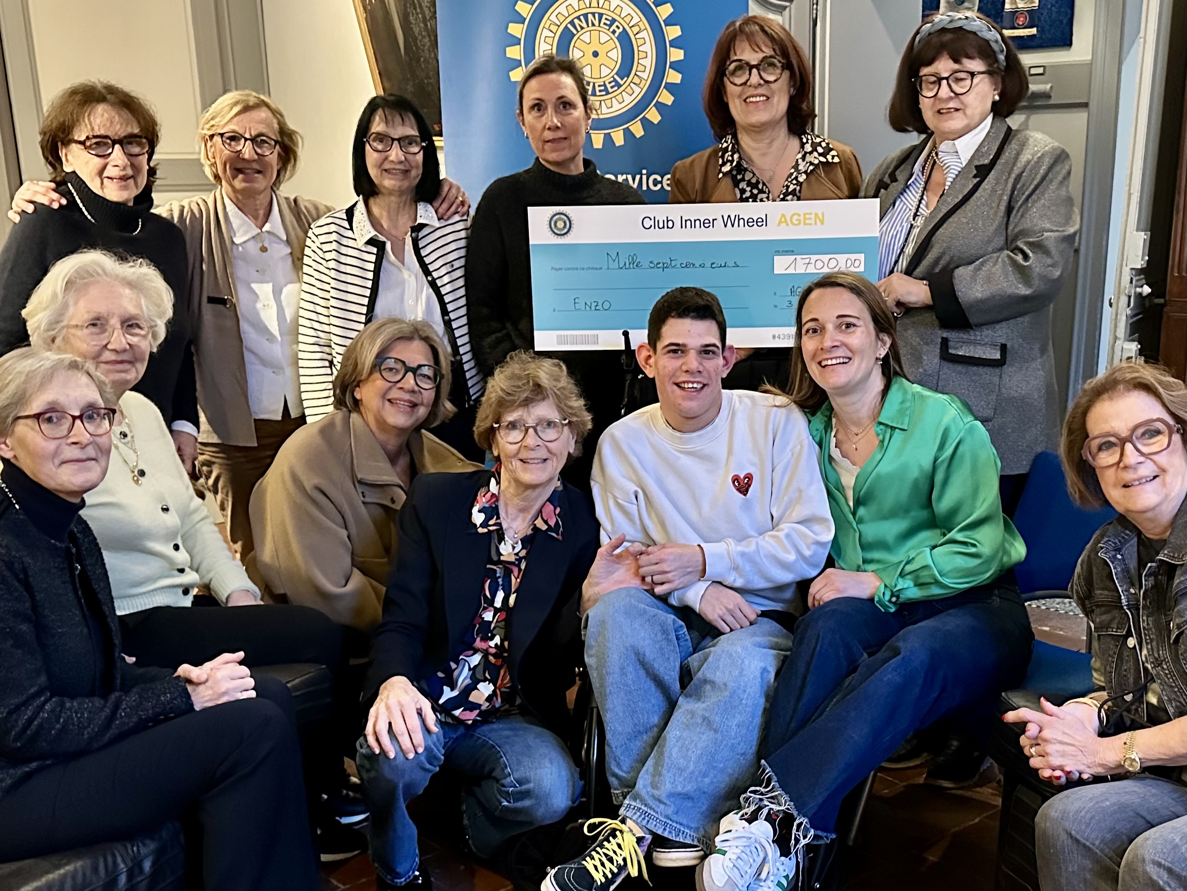 Les Inner Wheel d’Agen ont remis mardi 3 mars, un chèque de 1 700 € pour contribuer à l’achat d’une poussette adaptée destinée à Enzo, jeune Agenais de 17 ans atteint d’une maladie génétique rare entraînant un lourd handicap moteur et neurologique. Ce matériel spécialisé facilitera ses déplacements et son quotidien aux côtés de sa famille. Par ce geste de solidarité, le club réaffirme son engagement en faveur des enfants et des familles confrontés au handicap🌸
