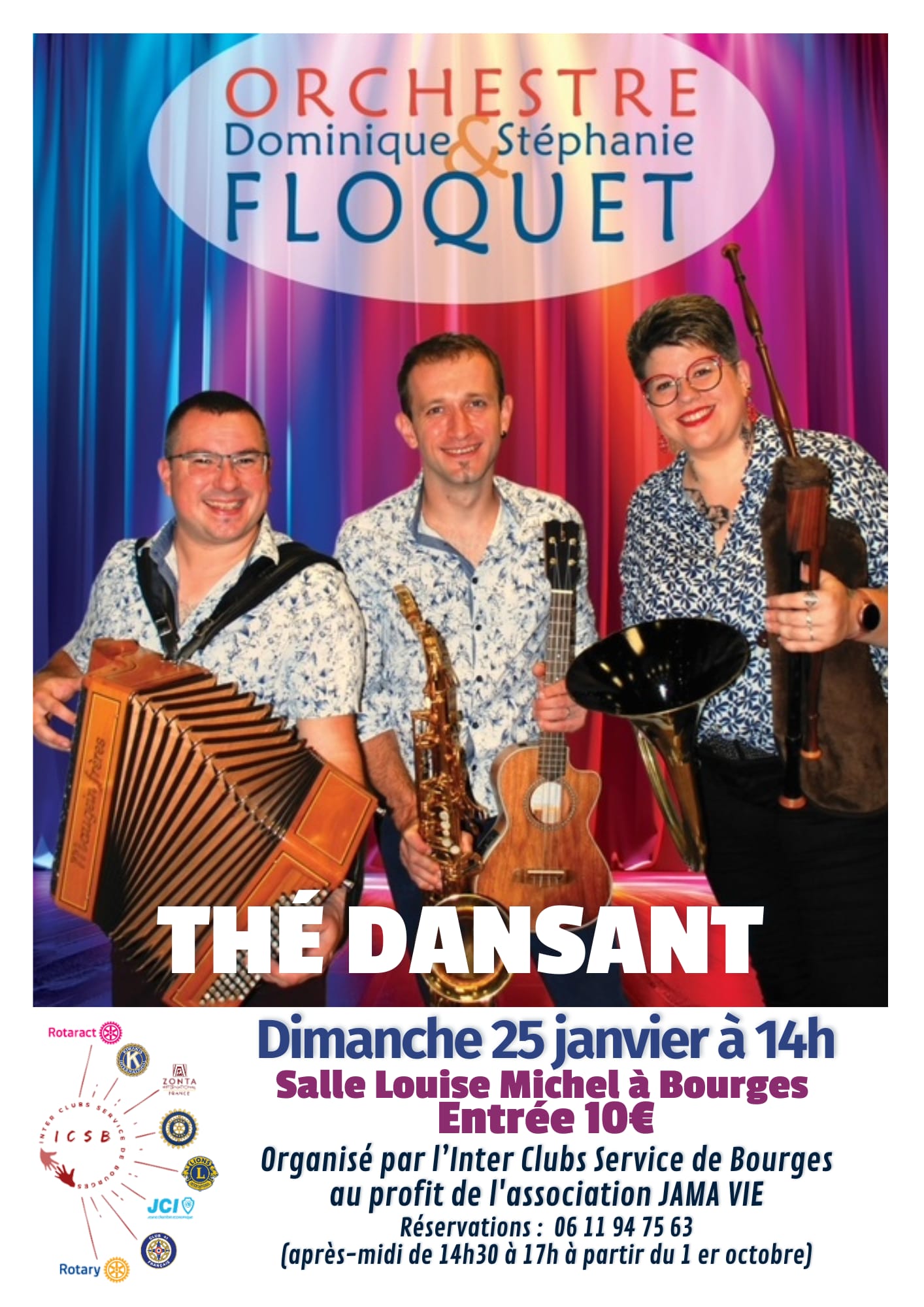 Les clubs Inner-Wheel, Rotary, Rotaract, Lions, Kiwanis, Zonta, club 41 de la ville de Bourges organisent un thé dansant au profit de JAMA VIE, qui accompagne les personnes en fin de vie