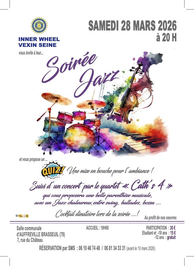 A AUFFREVILLE BRASSEUIL nous vous accueillons dès 19H ; L’ambiance est assurée, nous proposons un QUIZZ musical suivi d’un concert par le QUARTET    « CATH’S 4″ qui vous proposera une belle parenthèse musicale , avec un JAZZ chaleureux entre swing, ballades, bossa… et puis sera servi un cocktail dinatoire lors de la soirée…!