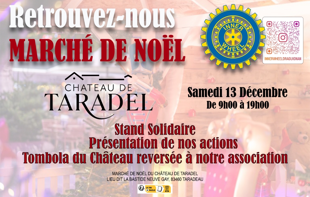 Nous vous attendons nombreux sur notre marché de Noël au Domaine de Taradel au bénéfice de nos œuvres sociales!