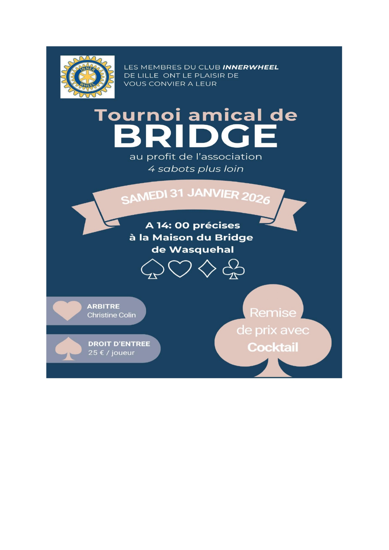 Tournoi de Bridge organisé par le Club de Lilles au profit de l’association « 4 sabots plus loin » ayant pour but de faciliter l’accès aux sports équestres pour les personnes en situation de handicap dans les Hauts de France.