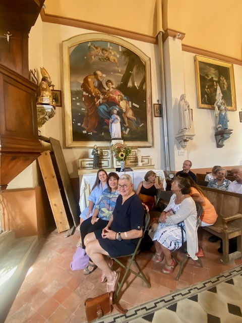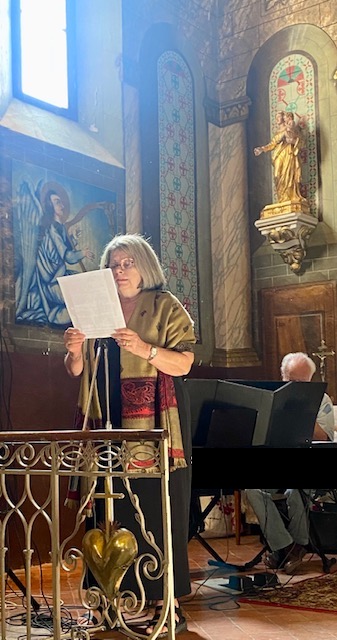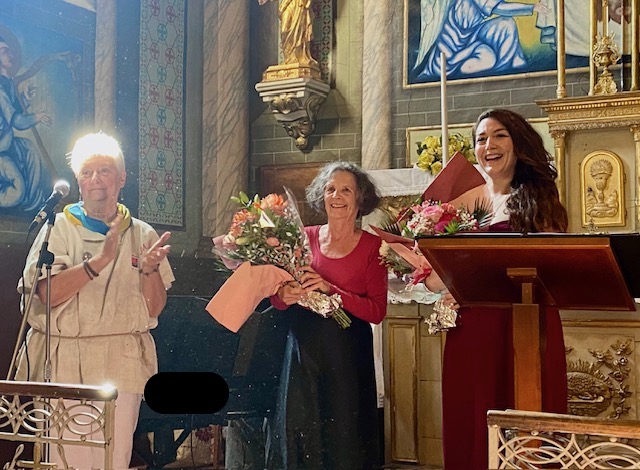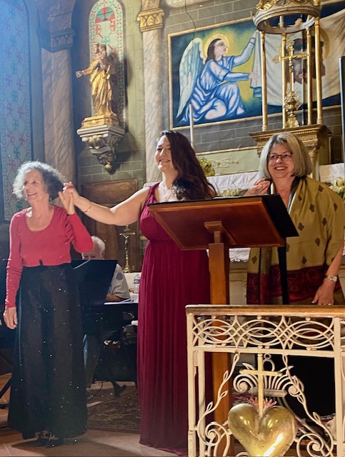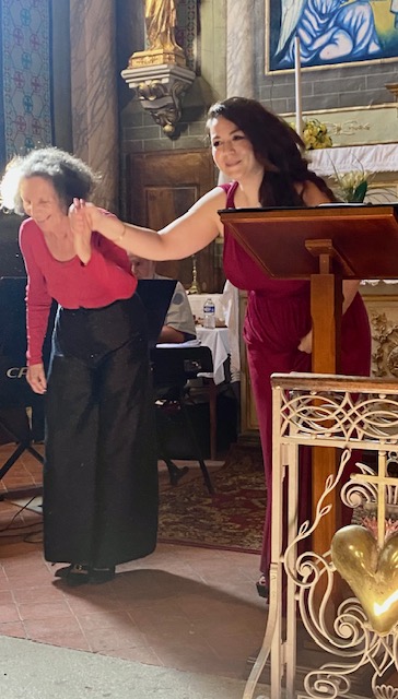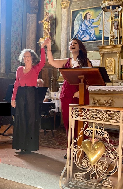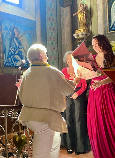• d’ assister en début d’après midi dans l’église à un concert gratuit exceptionnel d’Alice GONTERO, soprano professionnelle. Elle était accompagnée au piano de Chantal DURAND et de Marie-Françoise PIGNARD pour une lecture explicative des morceaux. L’église s’est hélas avérée trop petite pour accueillir tout le public qui souhaitait y assister. L’assistance a été comblée.