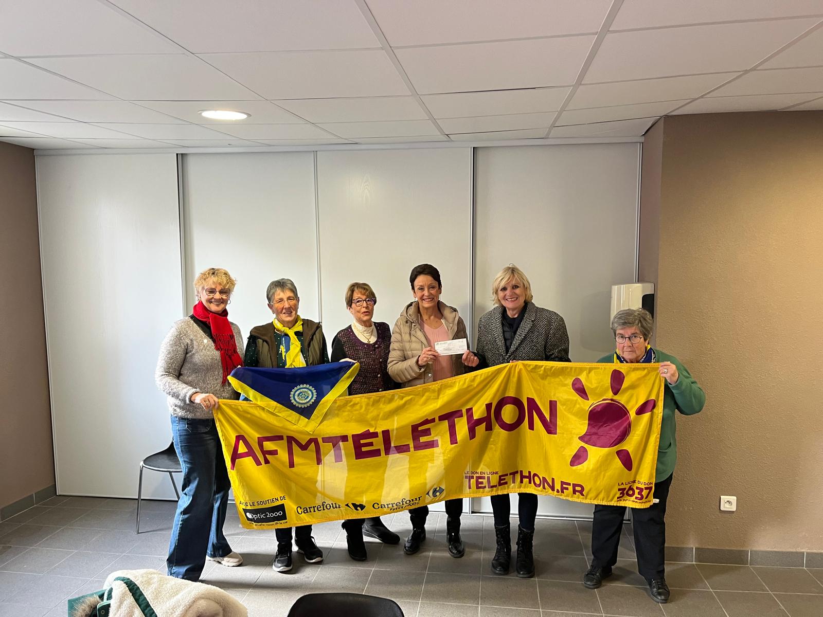 Le bénéfice de la loterie du 7 décembre dans le cadre de notre action LOTO, était dédiée au Téléthon. Le jeudi 5 janvier nous avons fait un don de 300 € et remis le chèque à Mme Mercier, responsable du Téléthon à Lézignan Corbières, accompagnée de son époux venu prendre des photos. A noter que nous figurions sur le flyer du Téléthon ce qui donne de la visibilité à notre mouvement dans la région.