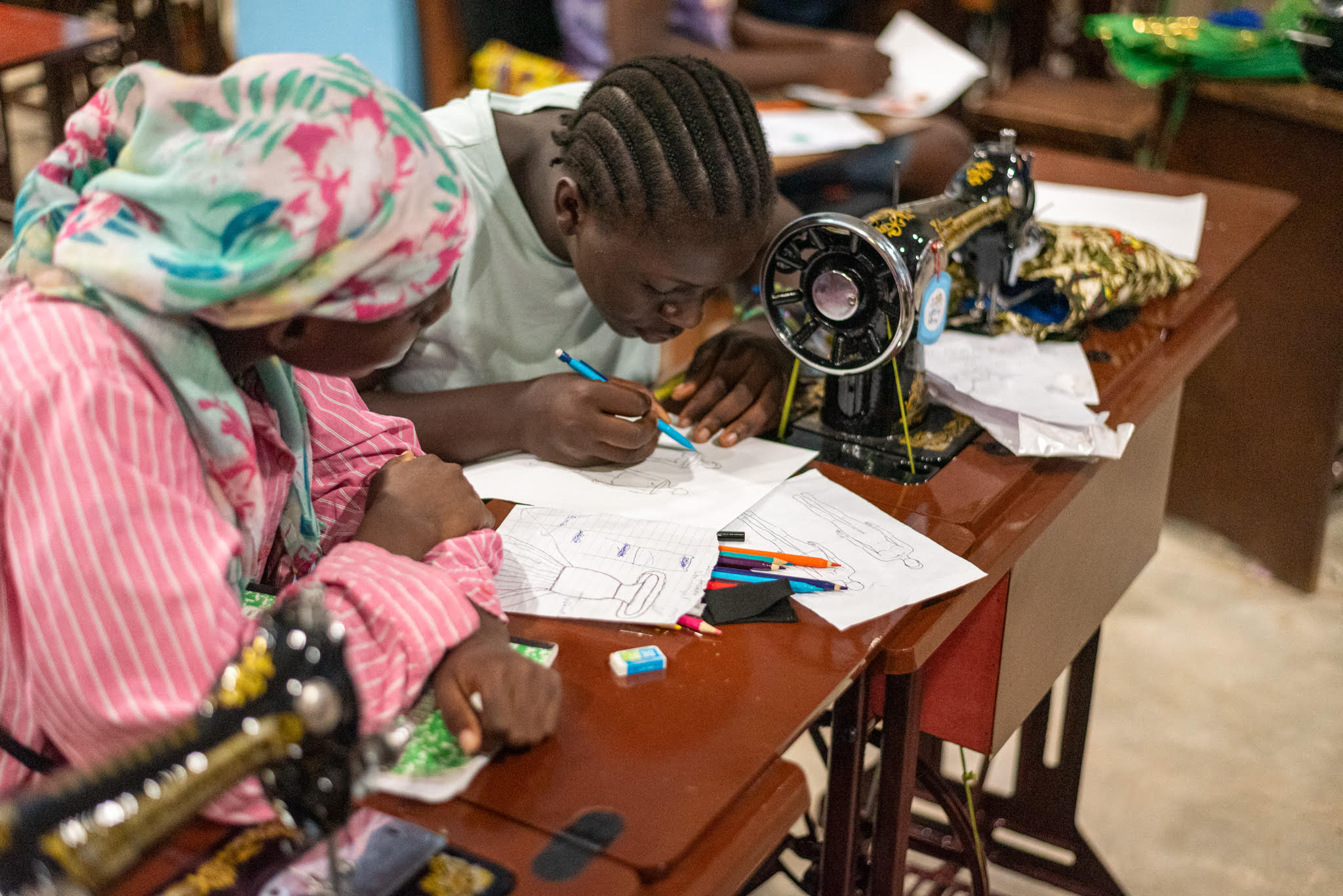 Grace à sa formation de styliste, Pauline a enseigné la couture aux jeunes filles. A la fin du séjour, les jeunes filles ont présentés leur robes. Le tissu est abordable, mais les fournitures hors de prix.